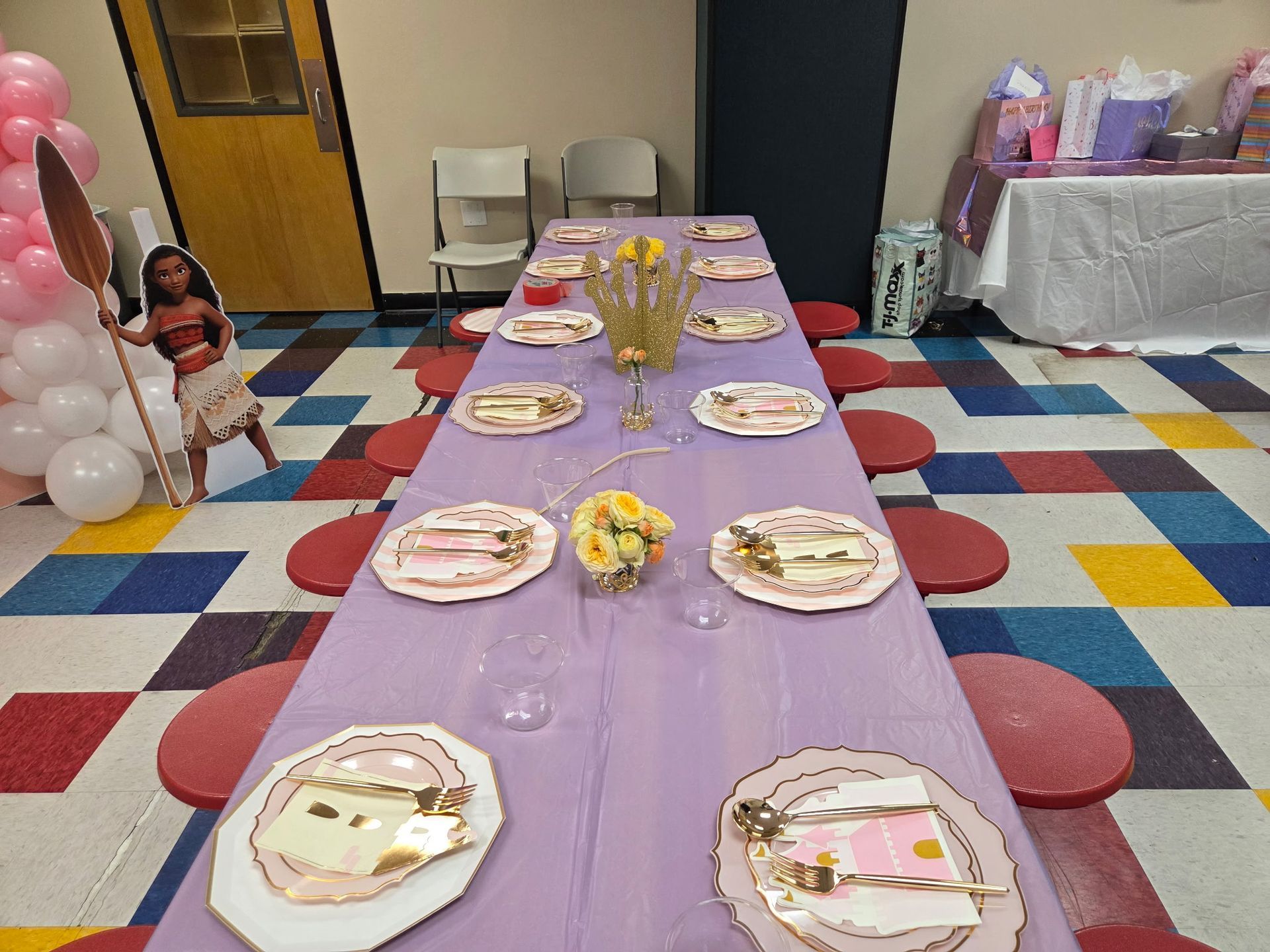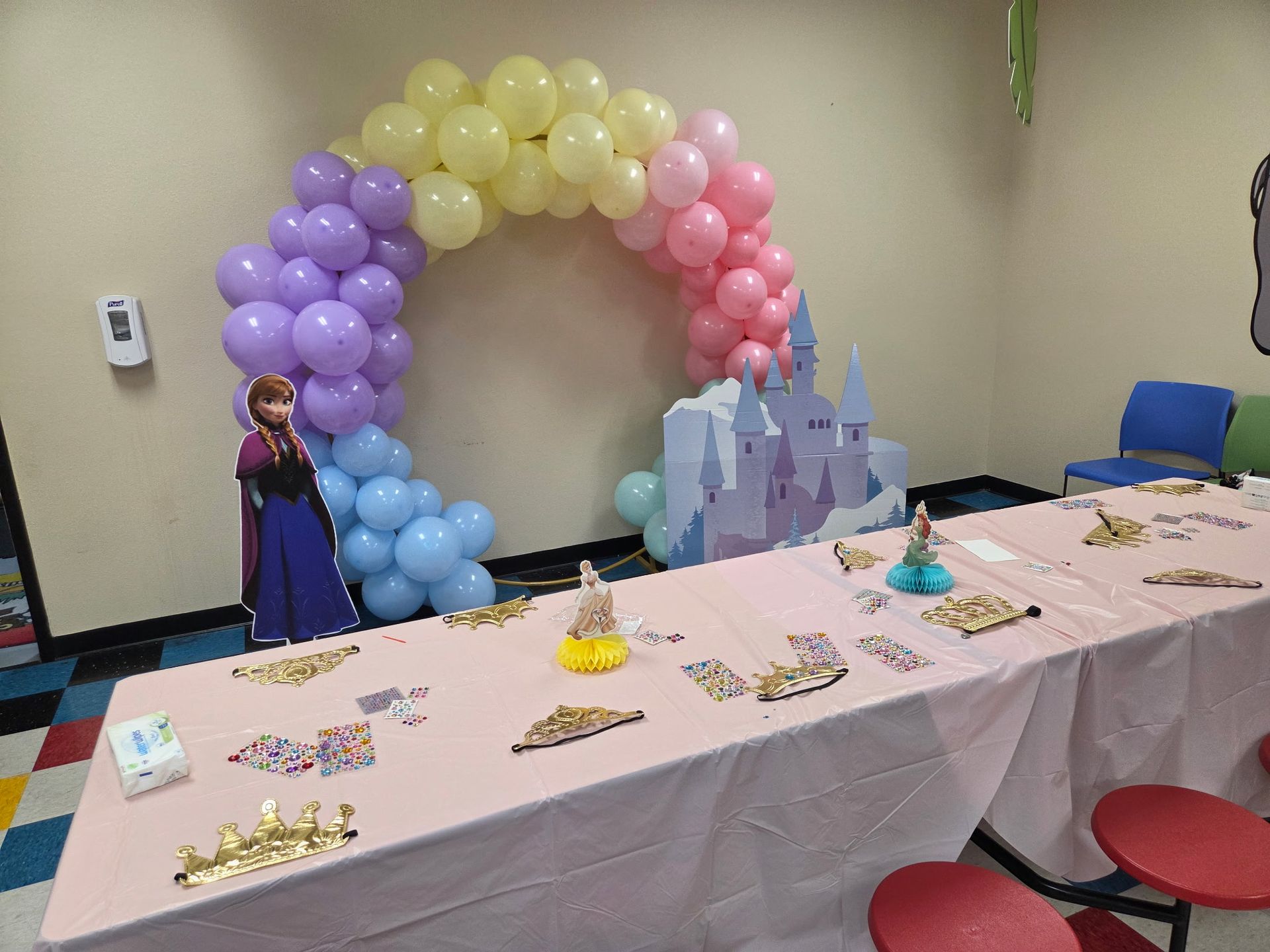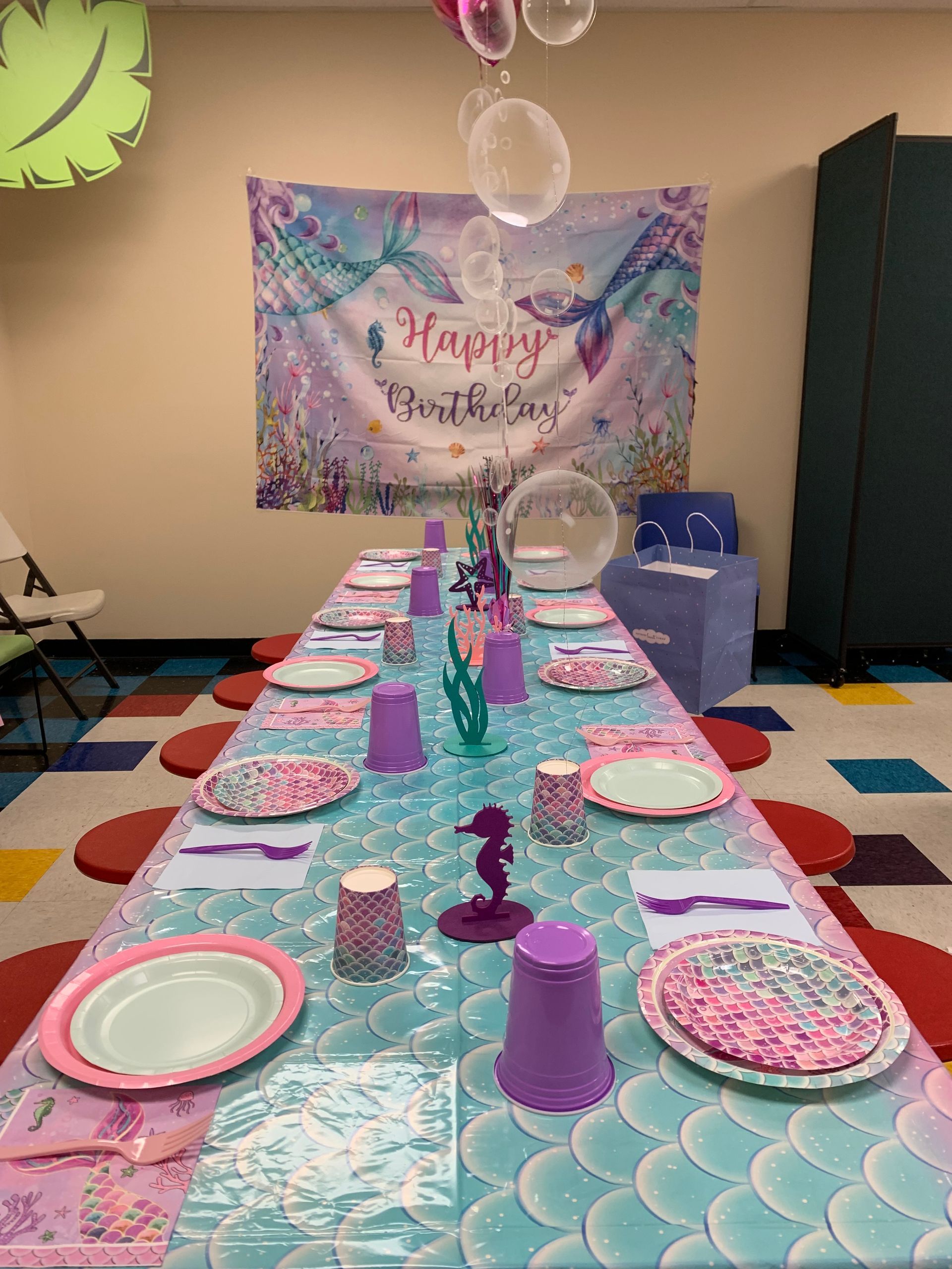 We can help you decorate for the party using your own decorations or we can provide solid colors from our inventory to match your party theme. We also have an extensive collection of themed decorations from previous parties, so just ask us to see what's available!